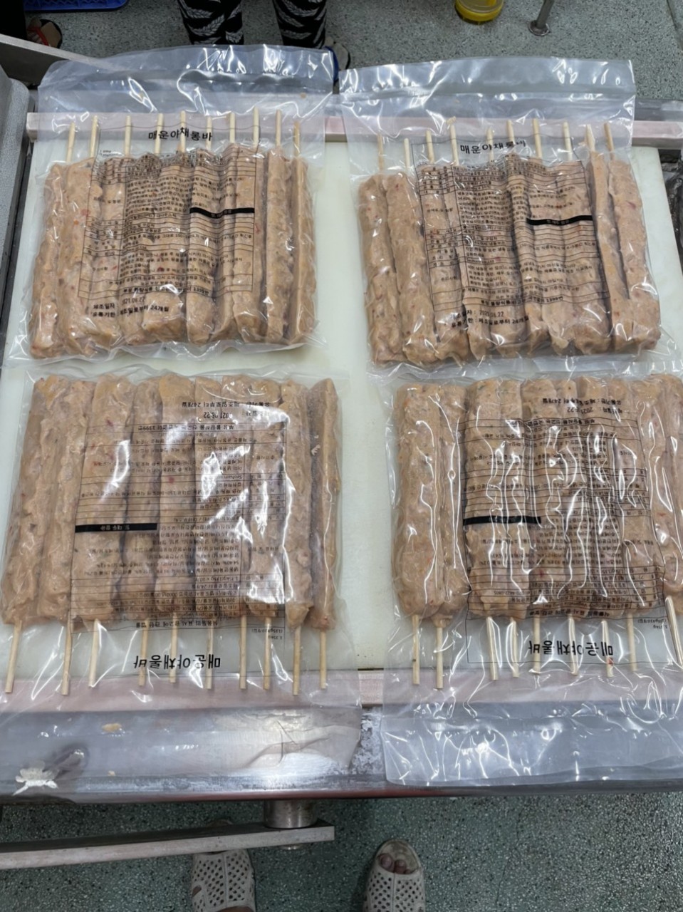 Chả cá hấp Hàn Quốc” (chả cá Hàn Quốc hấp) là một món ăn phổ biến, đặc biệt là ở các khu ẩm thực đường phố Hàn Quốc, có thể được làm từ chả cá tươi hoặc chả cá đông lạnh. Món này thường được làm từ cá xay nhuyễn, bột mì và các loại gia vị, sau đó được hấp hoặc luộc và thường được xiên vào que tre.