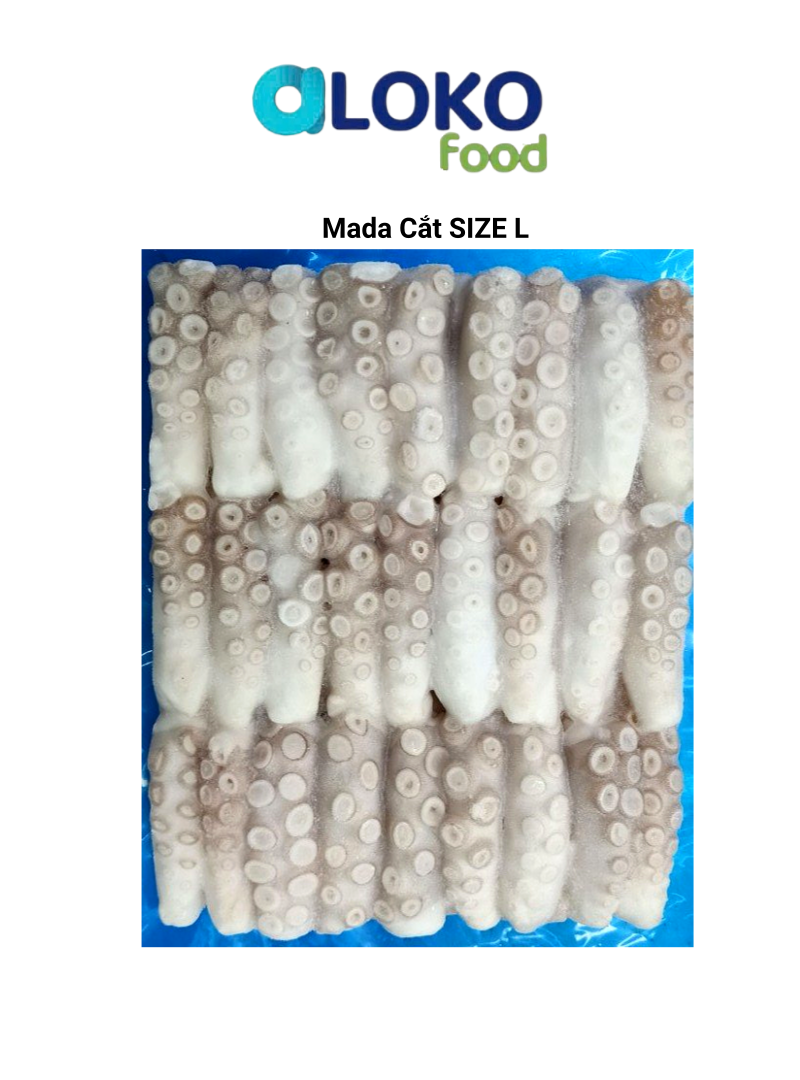 Bạch tuộc khổng lồ:Mada cắt size L thường được đánh giá là ngon hơn các loại bạch tuộc nhỏ, với thịt giòn, ngọt và thơm hơn.
