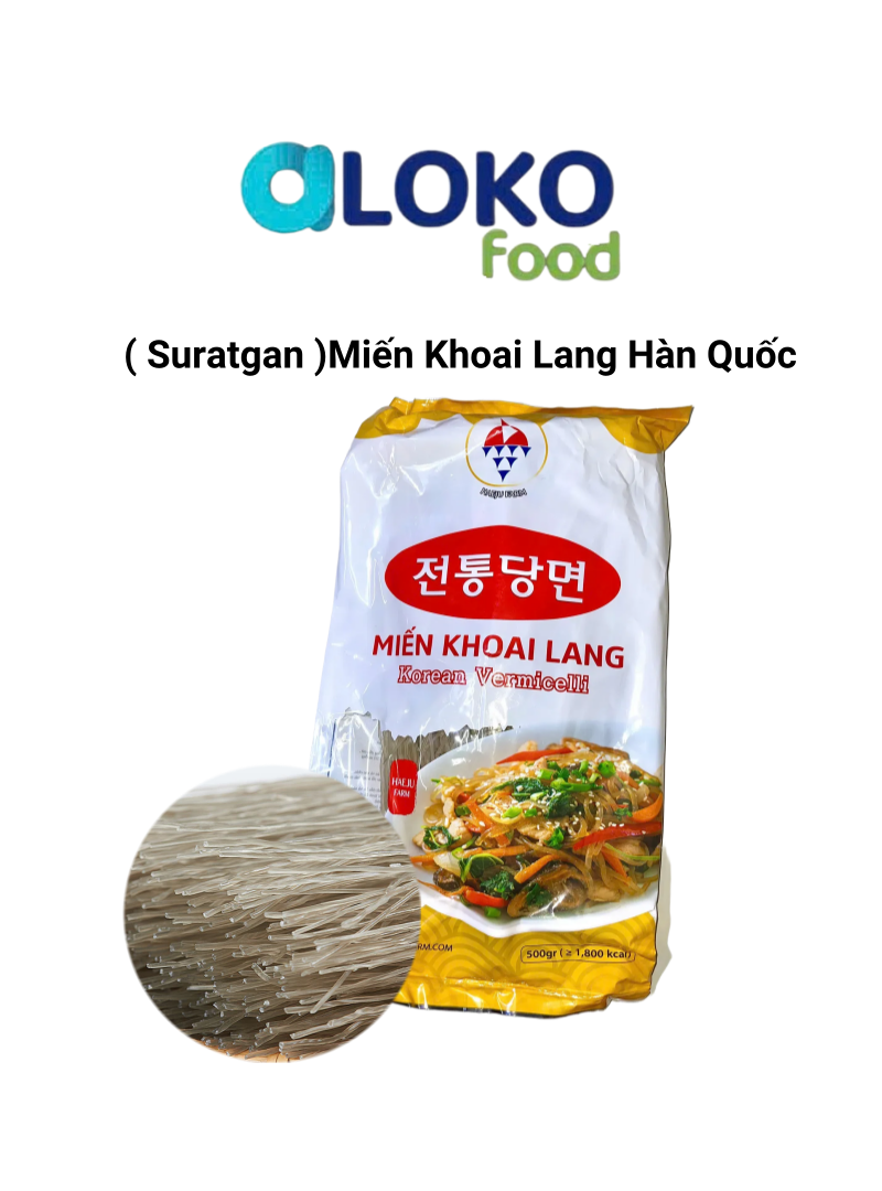 Miến khoai lang Hàn Quốc, thường được gọi là “Suragan” (suy đoán từ “Surang” trong tiếng Hàn, có nghĩa là “sợi”), là một loại miến làm từ tinh bột khoai lang, nổi tiếng với sợi dai, ngon và không bị nát khi nấu. Sản phẩm này thường được sử dụng trong các món ăn Hàn Quốc như miến trộn (Japchae), canh, lẩu, và thậm vực cả nhân bánh Mandu (bánh xếp).