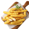 Mực chiên dài được làm từ thịt mực dày, dai , thịt mềm được phủ lớp bột chiên mỏng – không ngấm dầu – giòn rụm chỉ sau 5 phút chiên. Phù hợp vào menu cho học sinh, dễ ăn – dễ tiêu